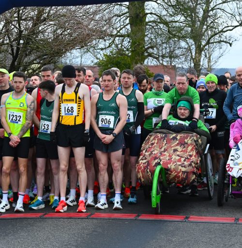 RUNNERS from throughout Tyrone and beyond today stood in silence prior to the start of the Lough Five in Loughmacrory on New Year’s Eve in memory of 20 year-old Padraig