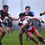 Then Davin McKeown bulldozed through and having seen his initial attempt smothered by keeper James McBennett he couldn’t scramble the rebound across the line amid a scrum, with ref Joe McQuillan eventually penalising the Dungannon skipper.